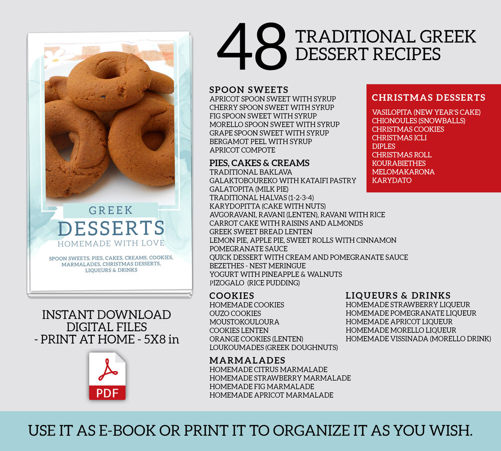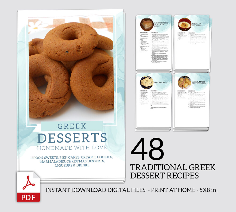 48 Traditional Greek Dessert Recipes Digital Cookbook, Instant Download PDF recipes E-book