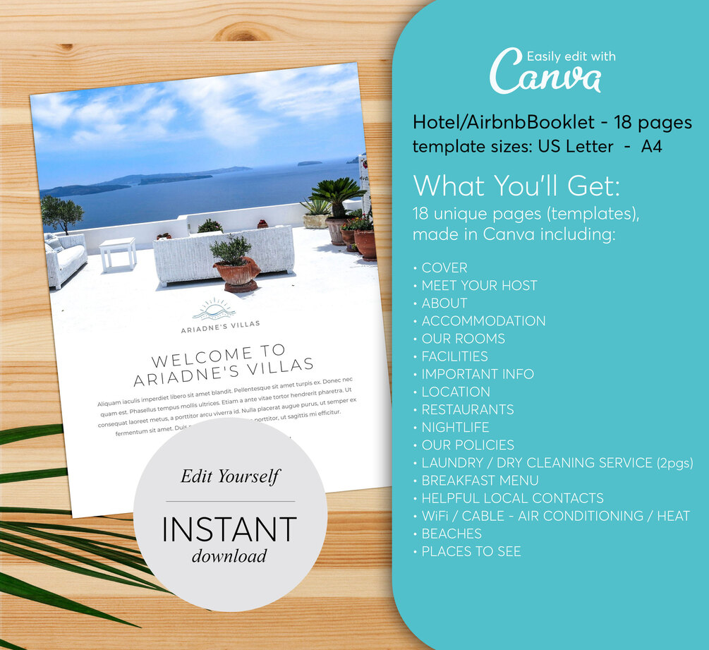 • Airbnb Hotel Booklet Templates • Self-Editable Template • Digital File Only • High-res 300dpi • Editable in Canva