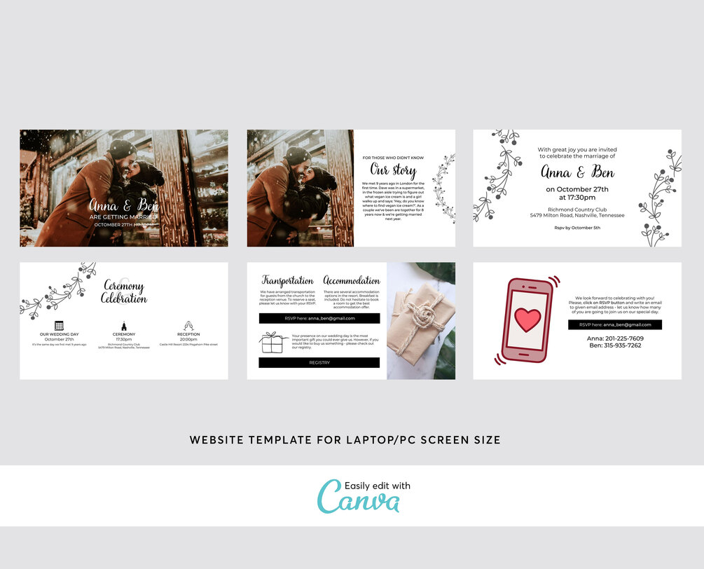 Simple Wedding Website Template Laptop & Mobile Size, Digital Wedding Invitation - Editable in Canva