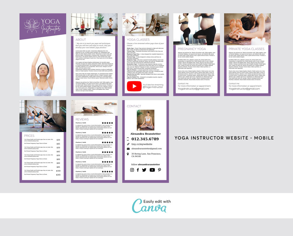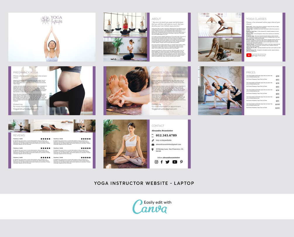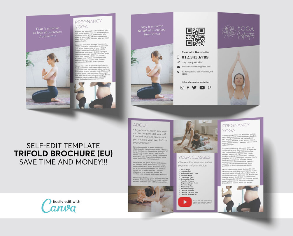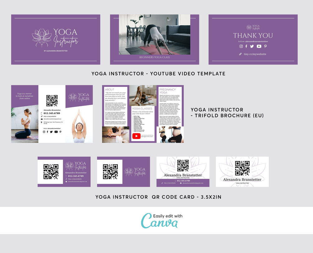 Yoga Fitness Personal Trainer Instructor Teachers Website Templates, YouTube Video Template,Trifold Brochure,Business Woman - Editable in Canva