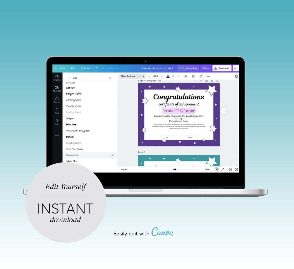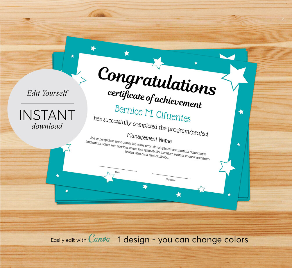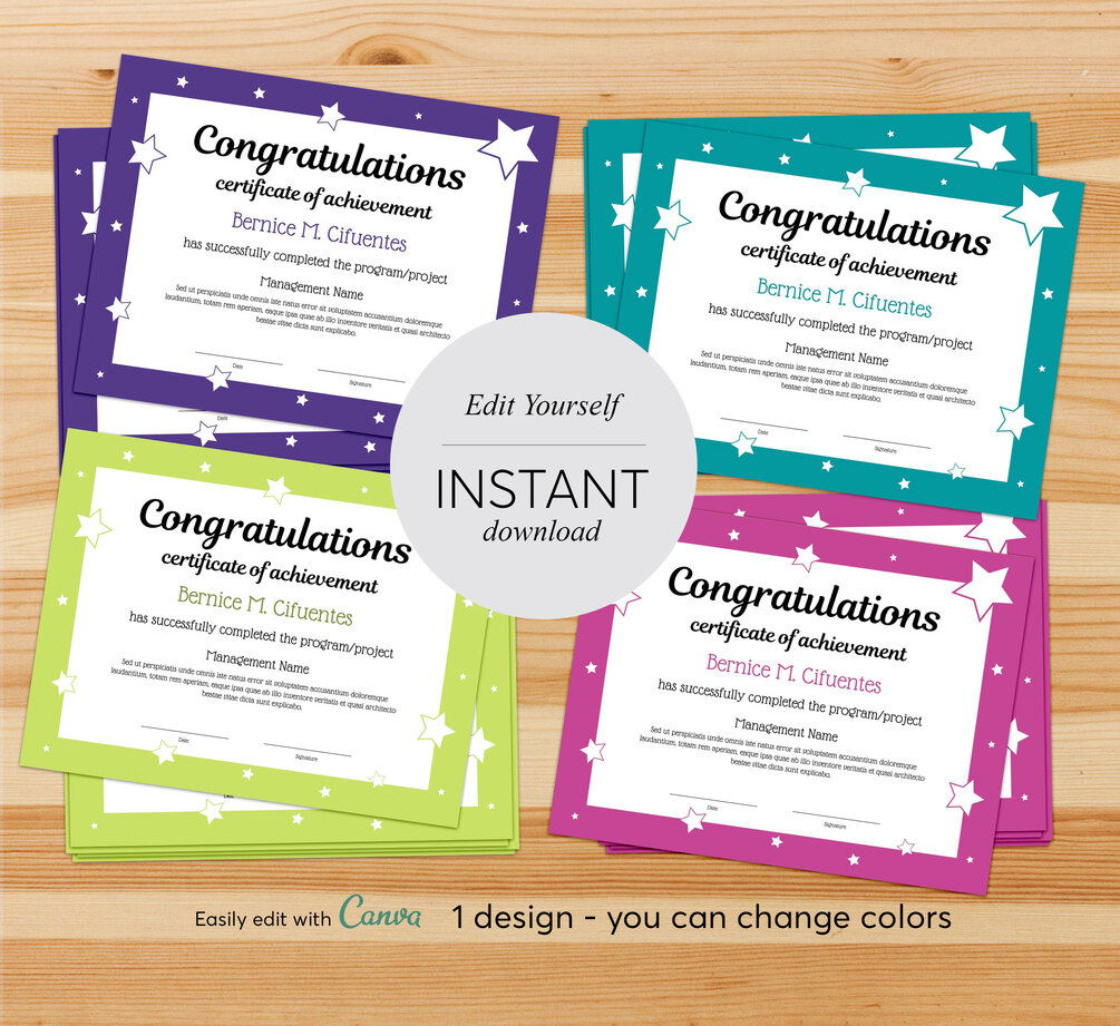 • Basic Certificate Templates • Self-Editable Template • Digital File Only • High-res 300dpi • Editable in Canva